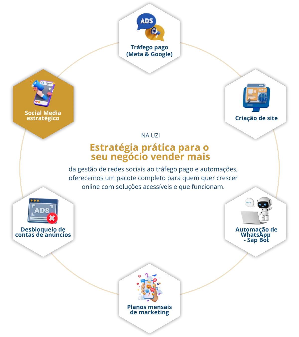 Da criação de conteúdo estratégico à gestão de anúncios, automações via WhatsApp e análise de resultados, oferecemos tudo o que seu negócio precisa para crescer com consistência e se destacar no digital.